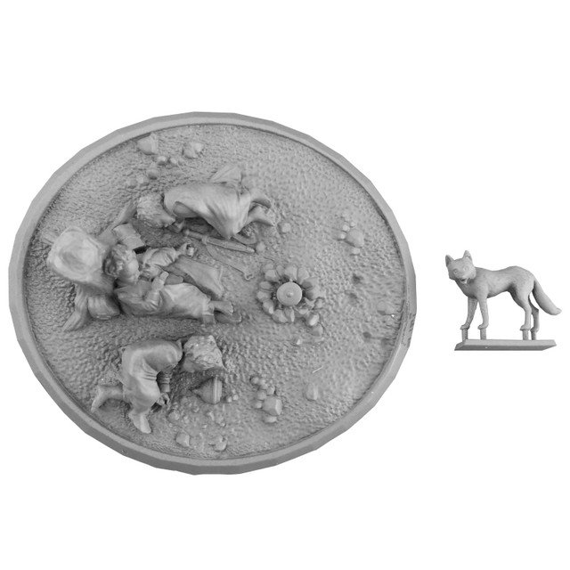 Only 50 of these figures are produced at this time. This is the 219th release in the Gold Status Fellowship club. This is the July 2024 winning Fellowship idea suggested by member “Axel“. This is the thirty-second fully UV resin release. Mithril is offering a choice between primed and unprimed. This release has a large detailed circular base with attached figures and a separate fox. It is 32mm scale. The base has the manufacturer name MITHRIL, the sculptor’s name and creation date and MZ number on the bottom and trade mark notice for Middle-earth Enterprises.