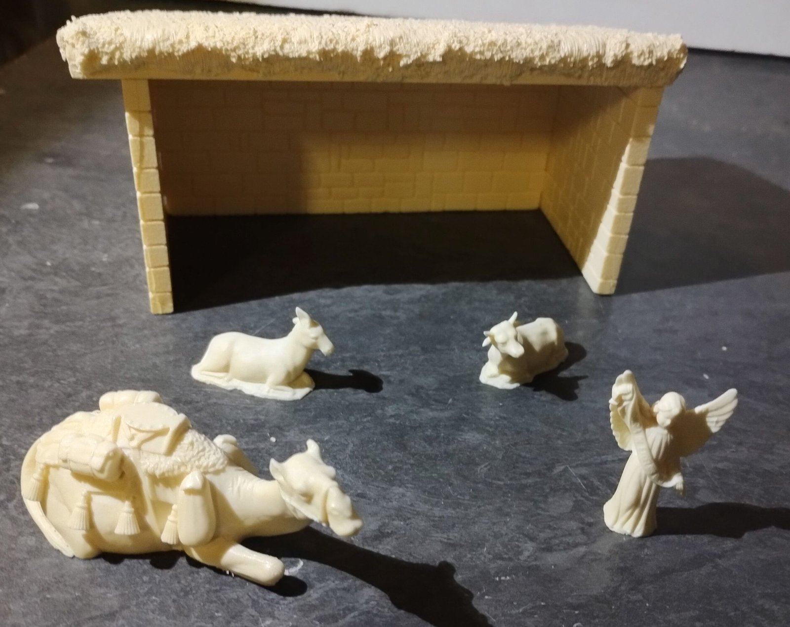 This is a prototype that has never been produced for sale. It has a set of Ox and Mule, and a camel along with a little angel, and the manger building